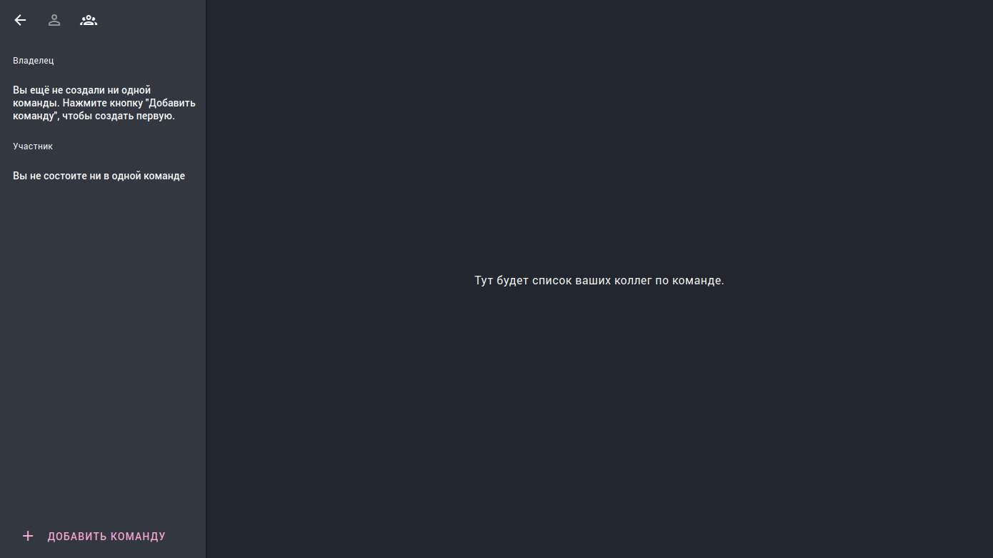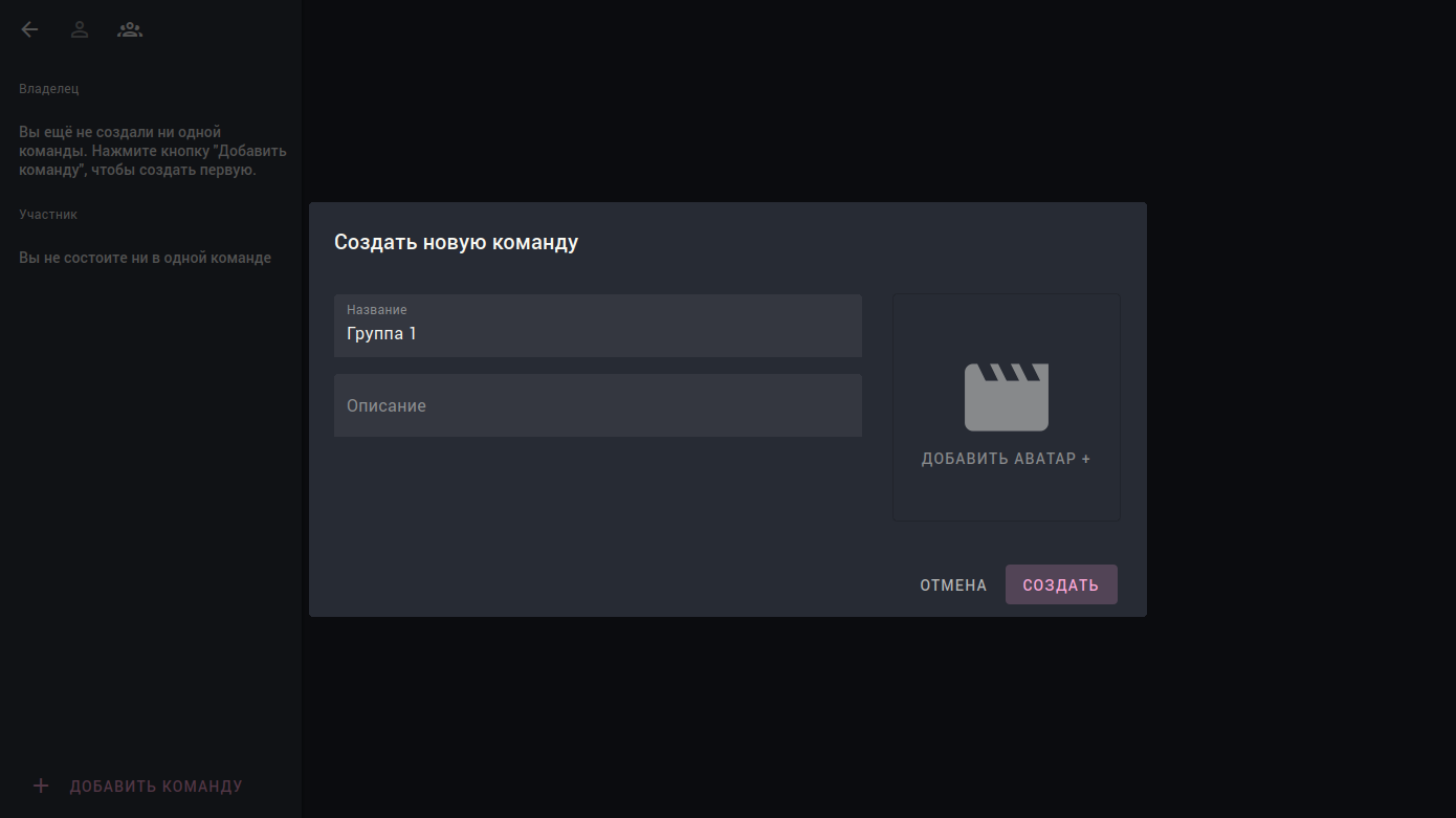 Кнопка добавления команды находится в нижней части левой панели. После нажатия вы сможете: